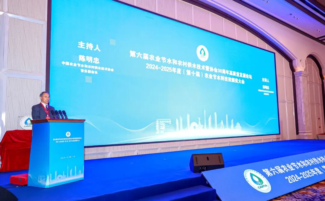 2025年11月8日至9日,第六届农业节水和农村供水技术发展论坛暨2024–2025年度(第十届)农业节水科技奖颁奖大会在广州举办。大会由中国农业节水和农村供水技术协会、农业节水科技奖奖励委员会主办。协会会长、中国工程院院士康绍忠致欢迎辞。协会原会长、水利部原副部长翟浩辉出席并致辞。水利部农村水利水电司司长倪文进、农业农村部种植业管理司副司长李增裕、广东省水利厅一级巡视员孟帆分别致辞。大会开幕式、颁奖大会、《农业节水和农村供水技术三十年历程回顾及展望》文集发布及战略合作签约仪式由协会常务副会长、水利部农村水利水电司原司长陈明忠主持。