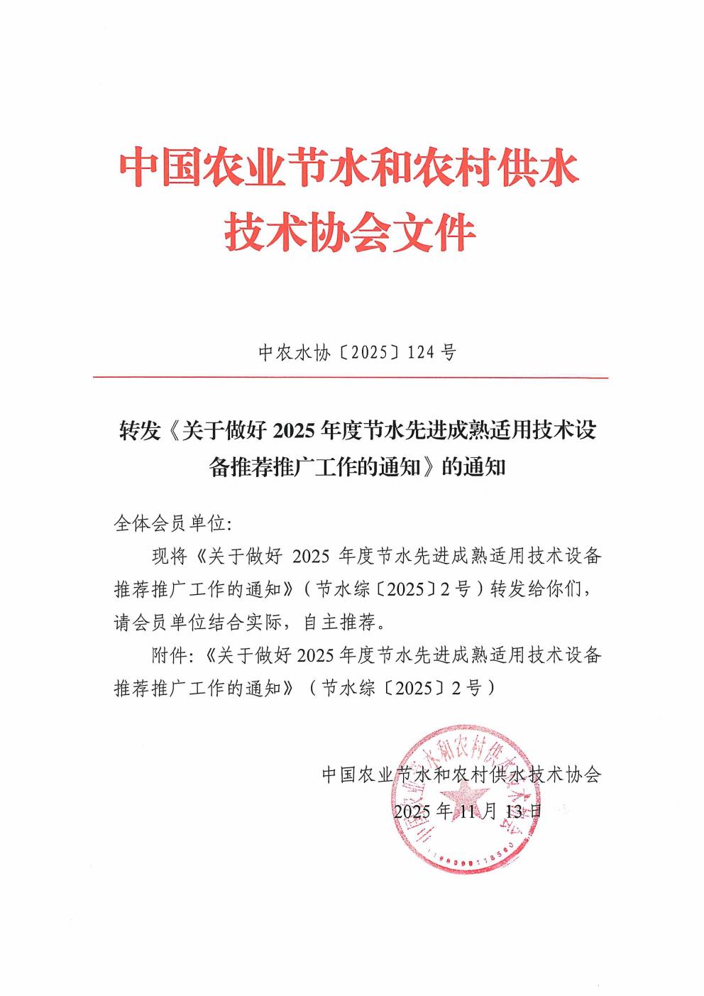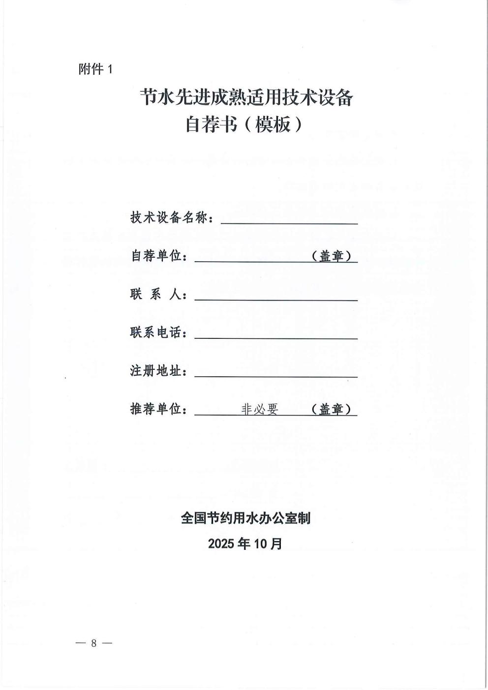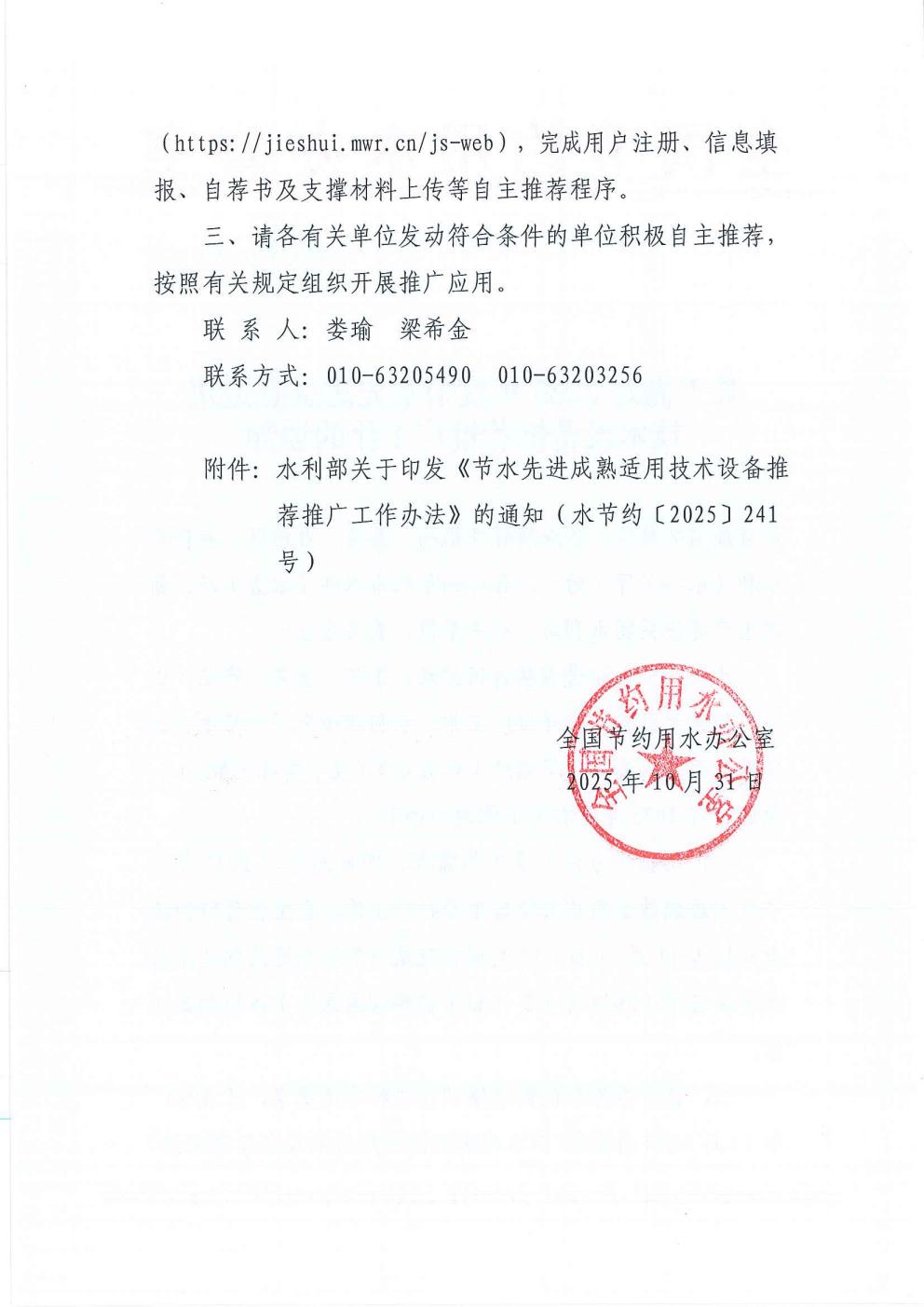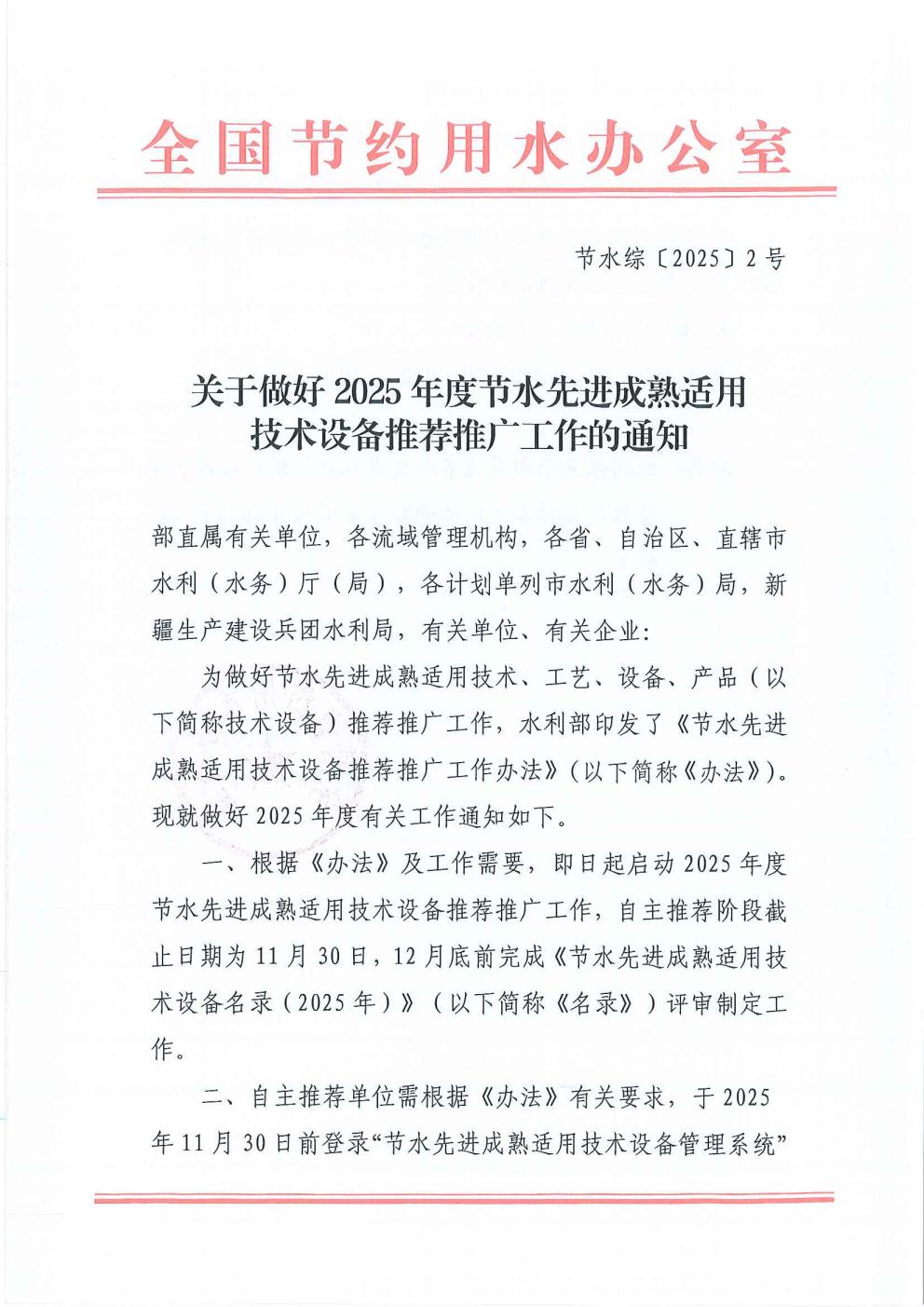 转发《关于做好2025年度节水先进成熟适用技术设备推荐推广工作的通知》的通知