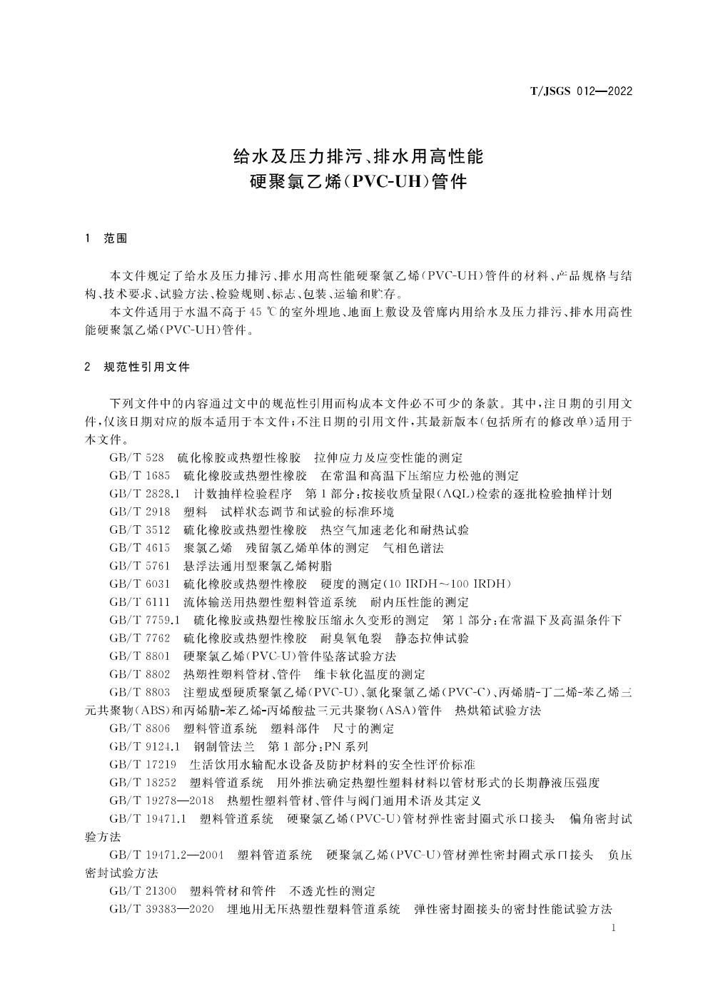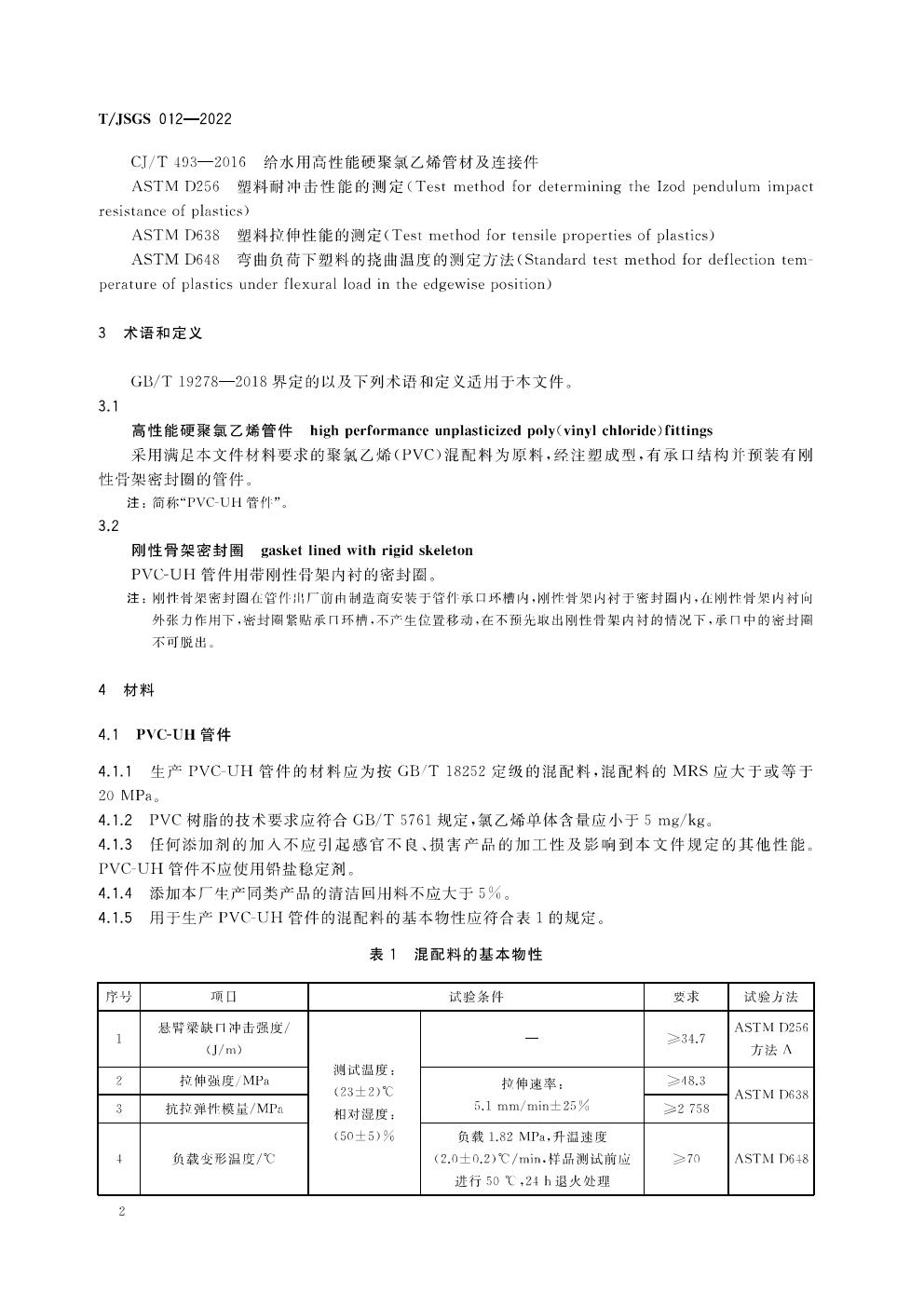 TJSGS012-2022-给水及压力排污、排水用高性能硬聚氯乙烯(PVC-UH)管件