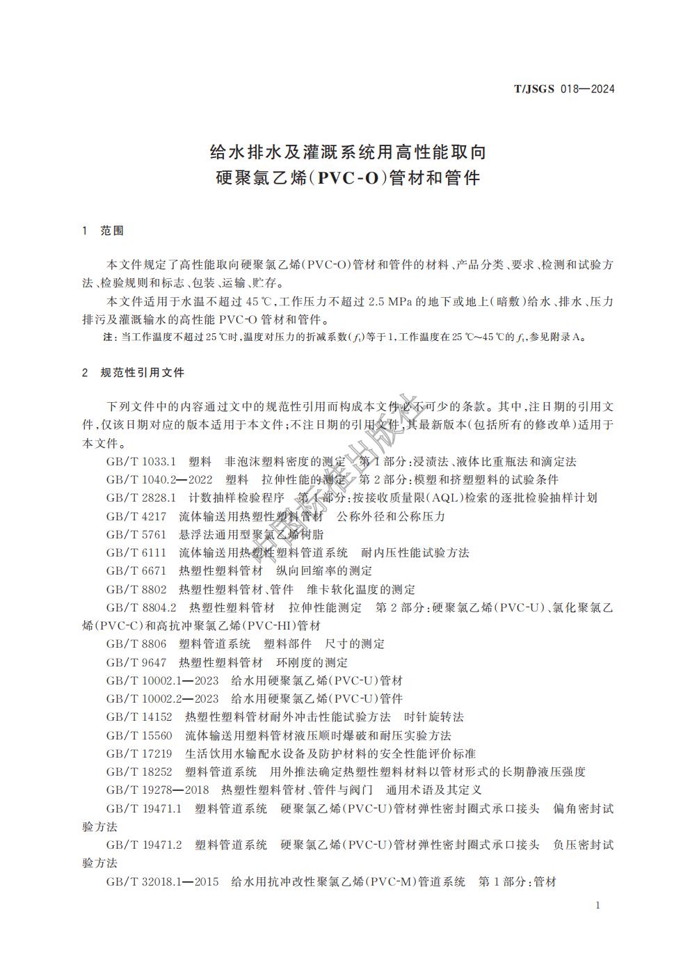 TJSGS018-2024-给水排水及灌溉系统用高性能取向硬聚氯乙烯(PVC-OH)管材和管件