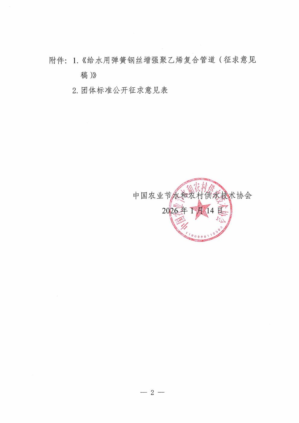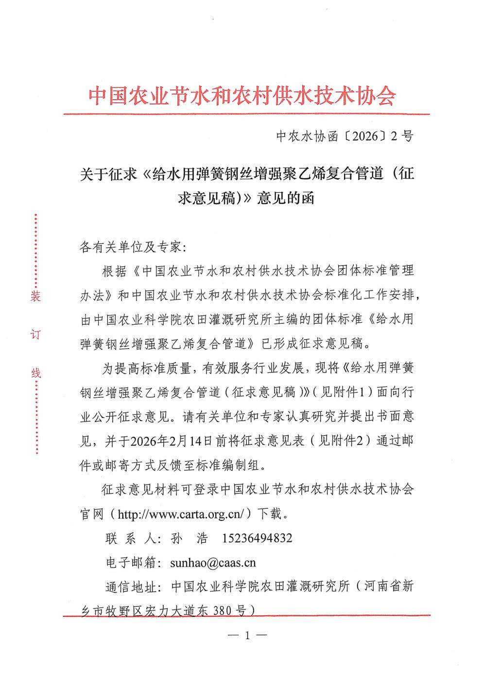 关于征求《给水用弹簧钢丝增强聚乙烯复合管道(征求意见稿)》意见的函