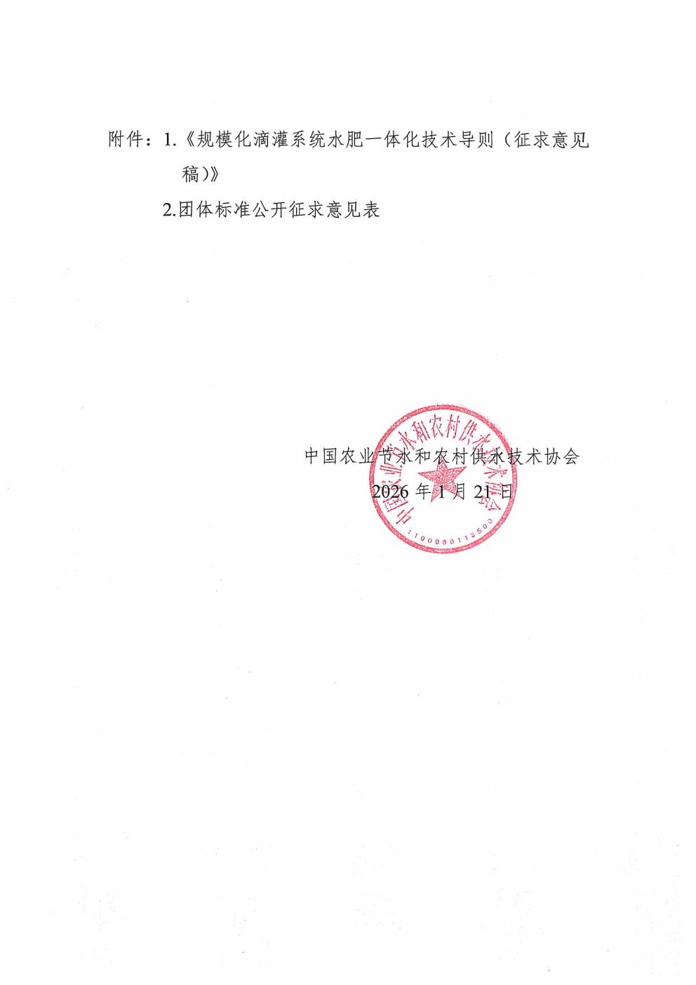关于征求《规模化滴灌系统水肥一体化技术导则(征求意见稿)》意见的函