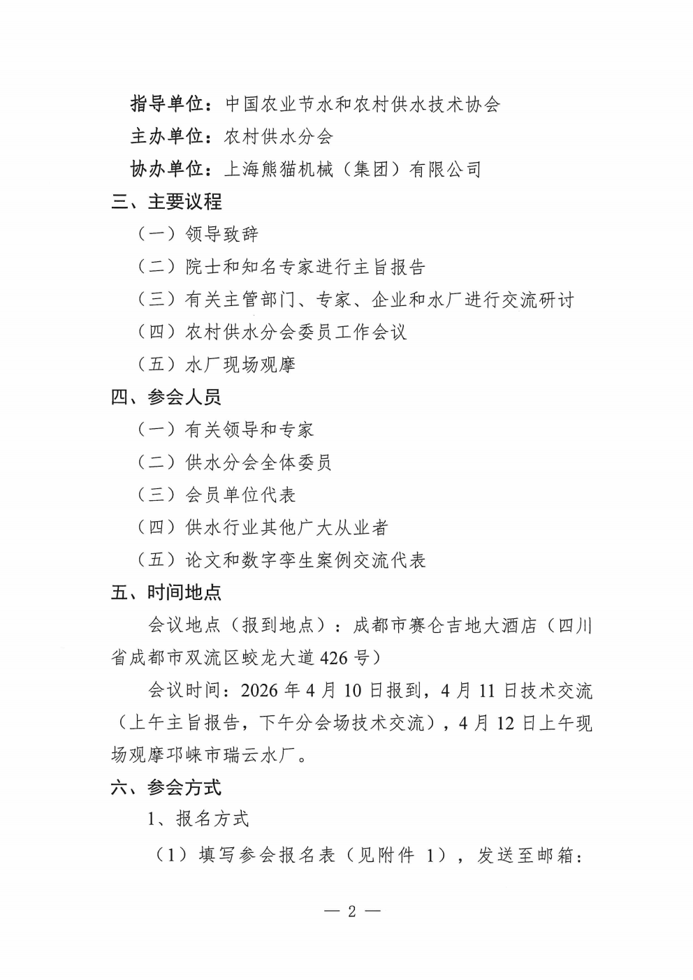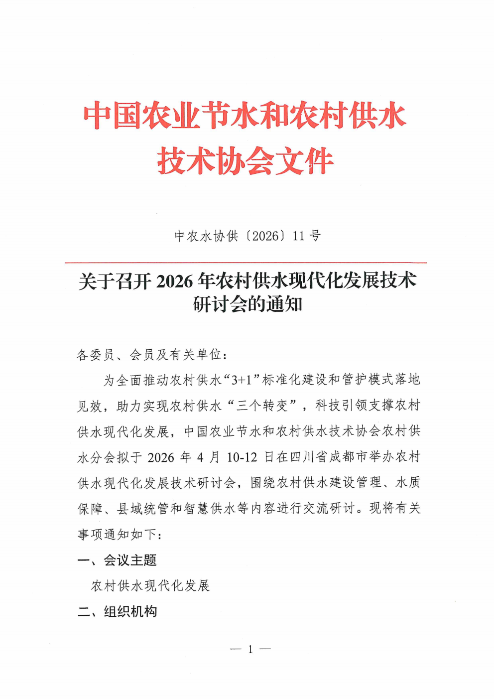 关于召开2026年农村供水现代化发展技术研讨会的通知