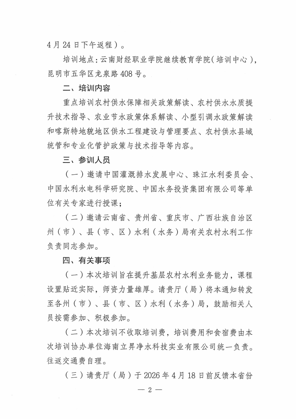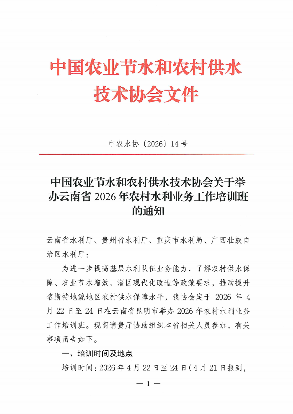 关于举办云南省2026年农村水利业务工作培训班的通知