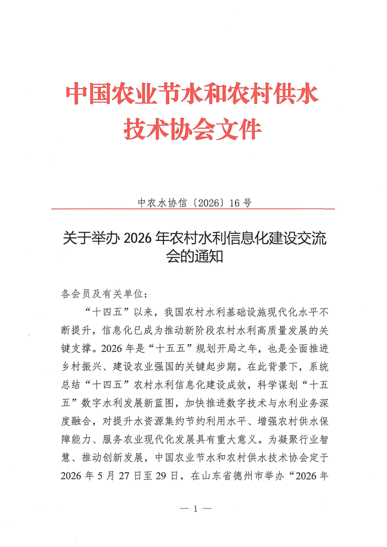 关于举办2026年农村水利信息化建设交流会的通知